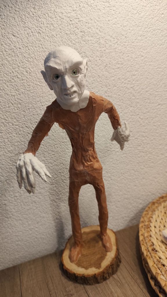 I’ve never made a clay figure before; this is my first time. I thought it would be a fun and educational challenge to learn how to work with air-drying clay. In part 1, I worked on Count Orlok’s head and hands. I found it quite difficult, and it’s really a case of trust the process, but it’ll all work out. See the process in the video. Part 2 will follow soon.